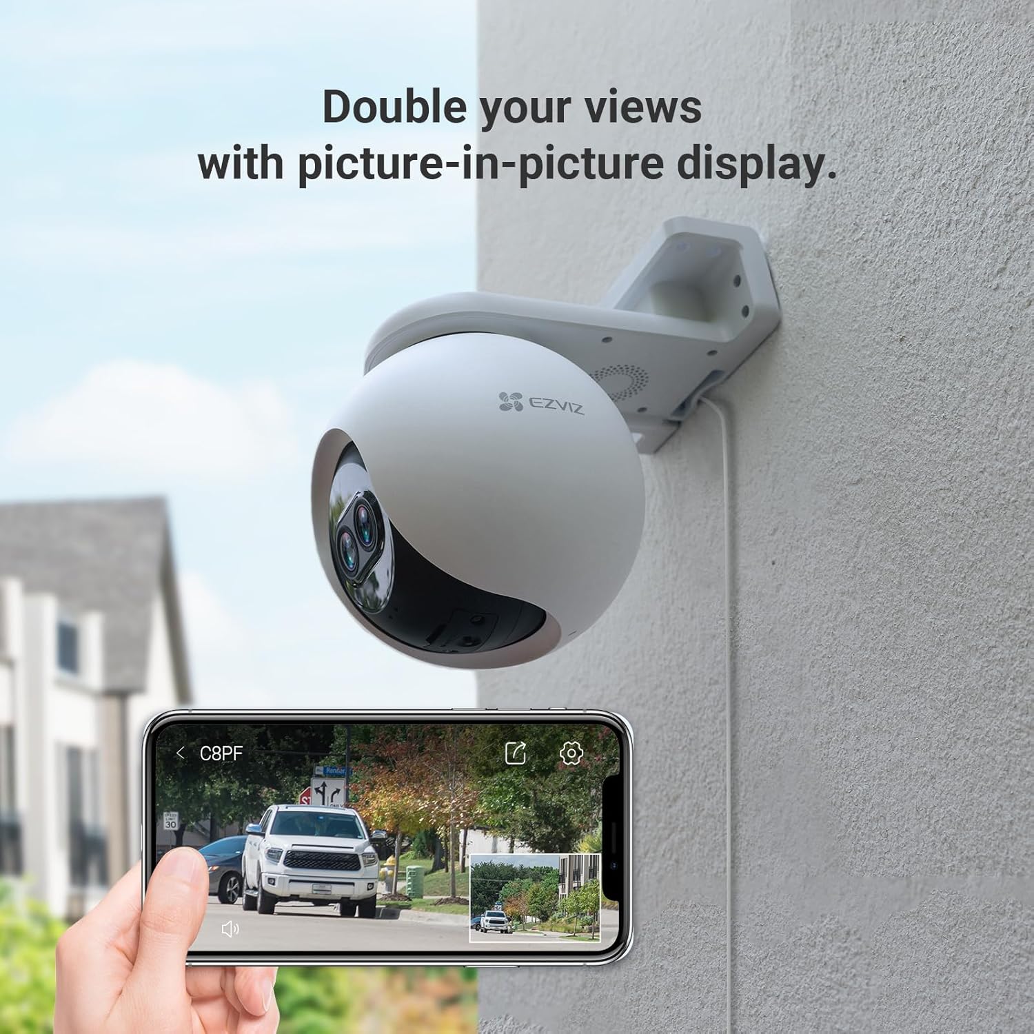 كاميرا مراقبة خارجية من EZVIZ، كاميرا واي فاي 1080 بكسل، تكبير/تصغير مختلط 8 مرات وكاميرا أمان تعمل بالذكاء الاصطناعي، مقاومة للماء IP65، تدعم بطاقة MicroSD حتى 512 جيجابايت