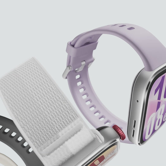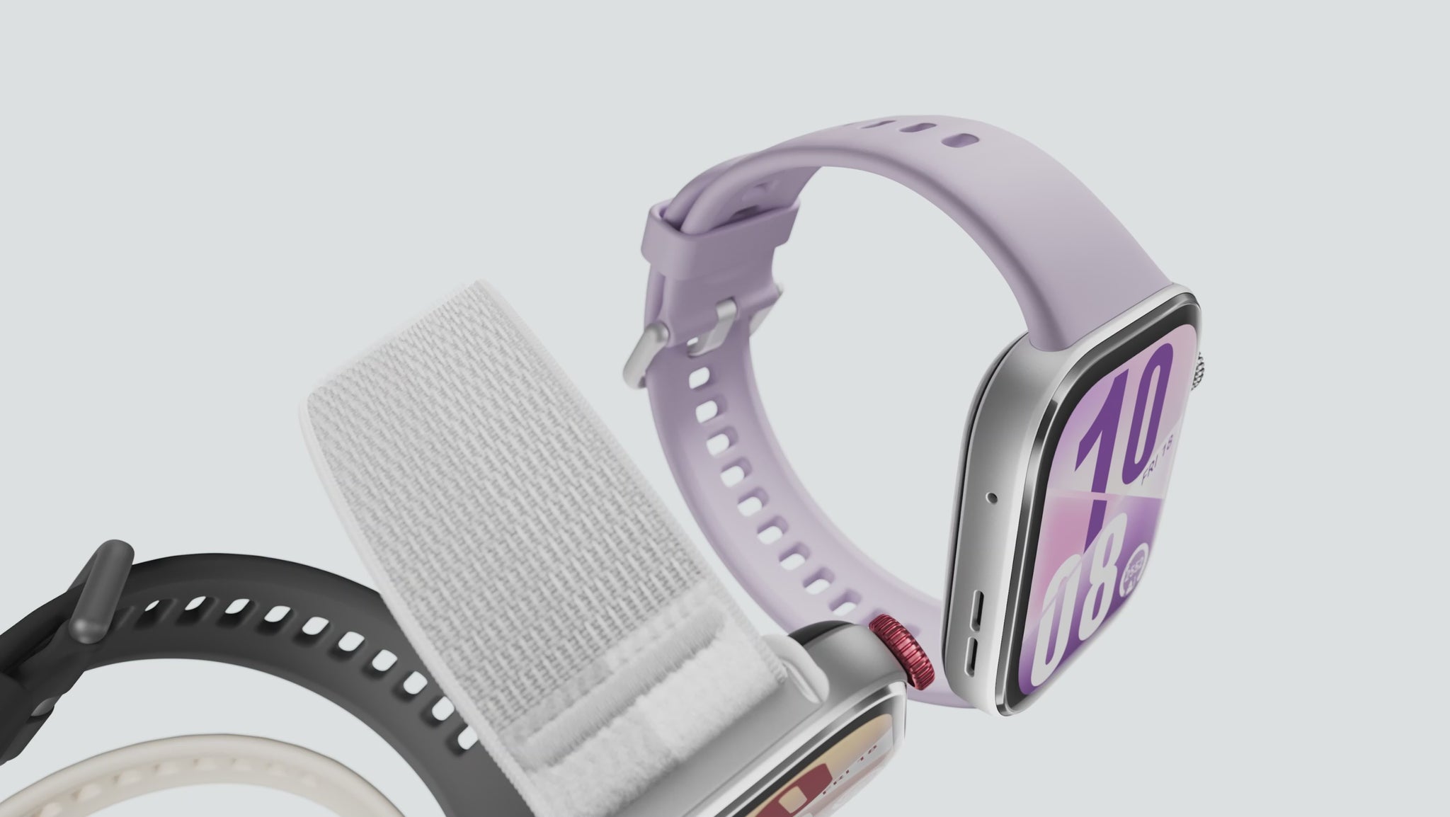 متوفر بألوان متعددة (رمادي، أبيض، أسود، أرجواني) مع أحزمة من النايلون أو الفلوروإيلاستومر، ويدعم أحجام المعصم من 120 إلى 210 ملم.