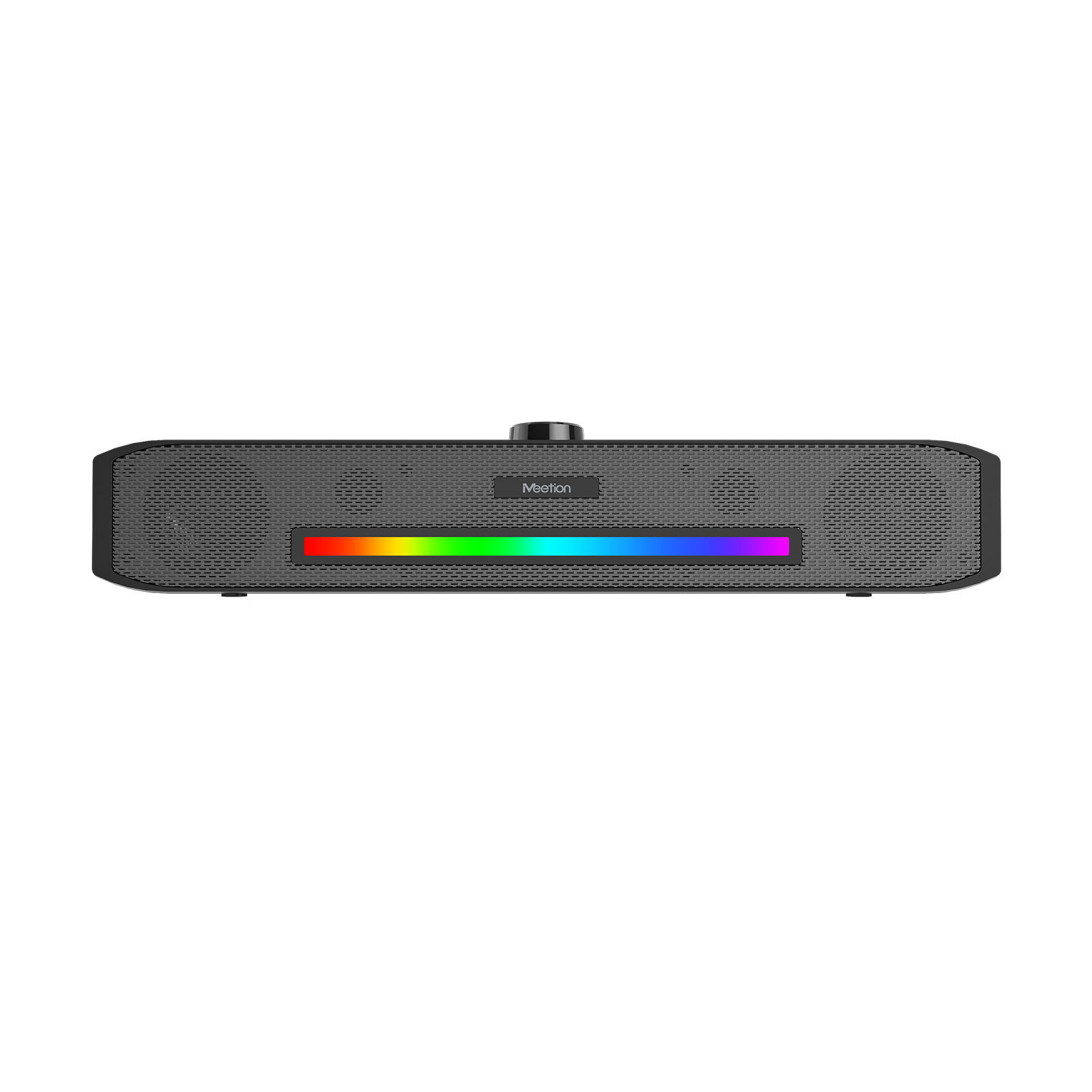 Meetion SP1001 هو نظام مكبر صوت مكتبي مزود بقناتين ومتصل بمنفذ USB مصمم لتعزيز تجربة الصوت لديك بصوت عالي الدقة وإضاءة RGB ديناميكية . تتضمن الميزات الرئيسية ما يلي: