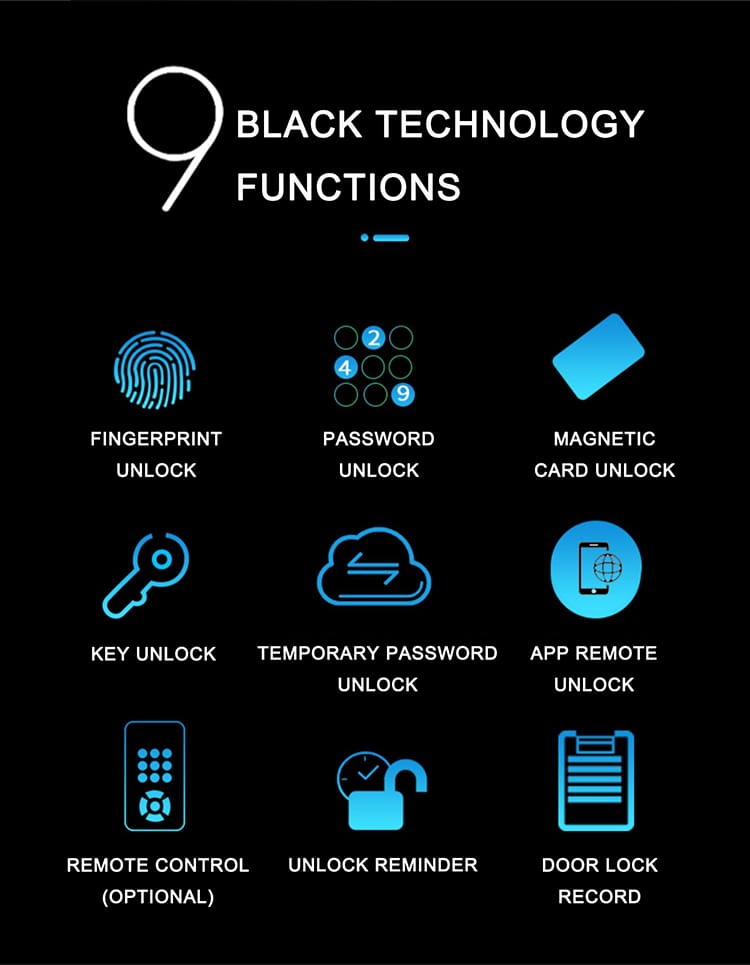 - وضع التعريف تطبيق TTLock، بصمة الإصبع، بطاقة التمرير، الكود والبلوتوث