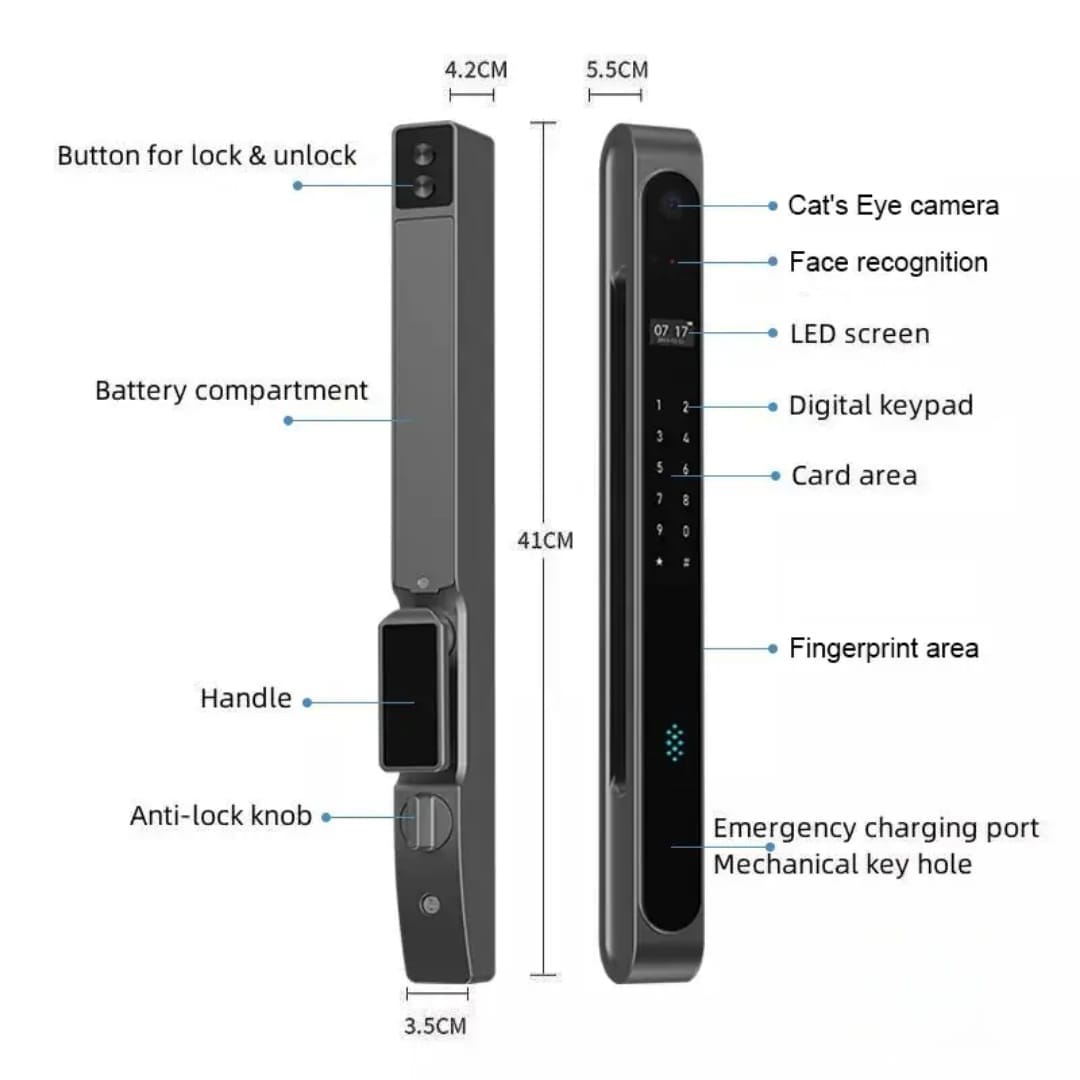 - قلب قفل إلكتروني آمن ومتين: استخدام قلب قفل إلكتروني عالي الجودة، جنبًا إلى جنب مع تقنية الدقة وتدابير الأمان المتعددة لضمان متانة وسلامة قفل الباب، لتوفير أمن عائلتك على المدى الطويل.