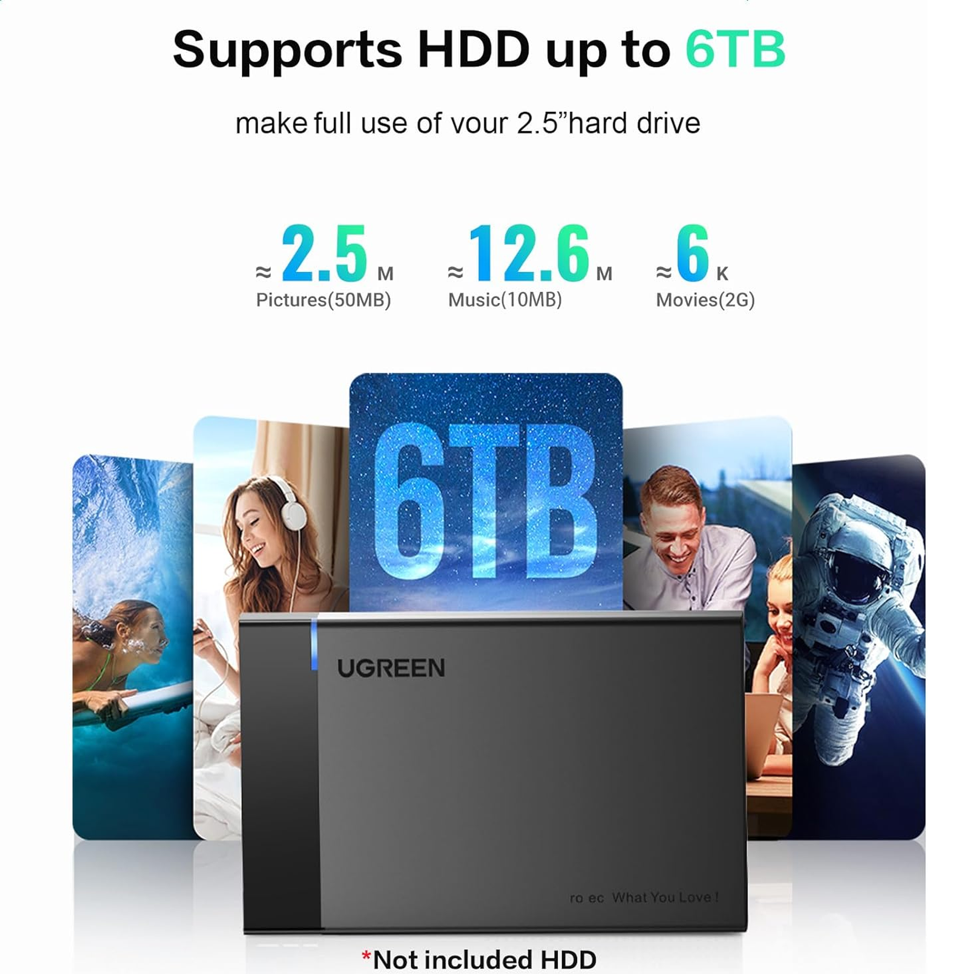 UGREEN 2.5″ علبة محرك الأقراص الصلبة بمحول USB 3.0 إلى SATA III