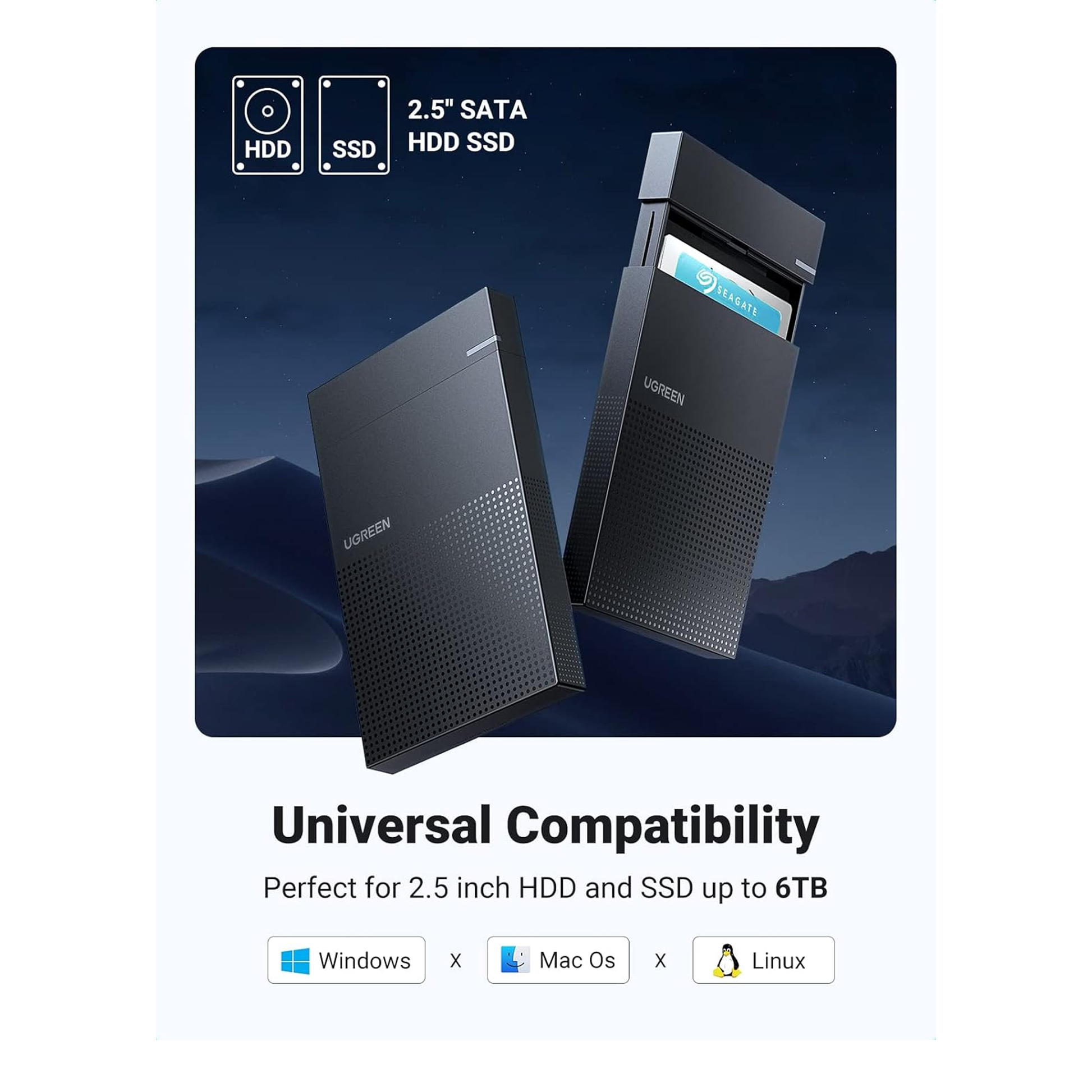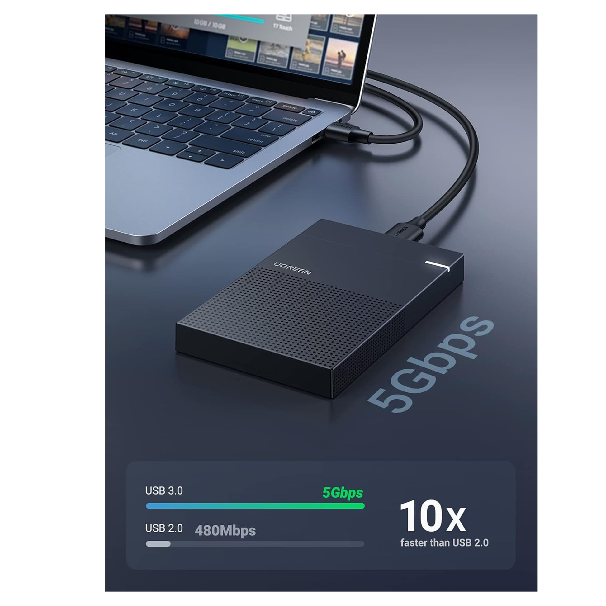 يعمل غطاء القرص الصلب UGREEN مقاس 2.5 بوصة بكفاءة وسرعة كوحدة احتياطية، مما يساعد على استخراج البيانات من القرص الصلب القديم أو المعطل في الكمبيوتر المحمول. مثالي لاستخدام قرصك الصلب القديم مقاس 2.5 بوصة أو قرص SSD كمحرك أقراص USB خارجي عند الحاجة إلى مساحة تخزين إضافية. تصميمه المحمول والمتين يجعل غطاء القرص الصلب خيارًا رائعًا عندما يكون قرصك الصلب على المكتب أو في حقيبة الظهر.