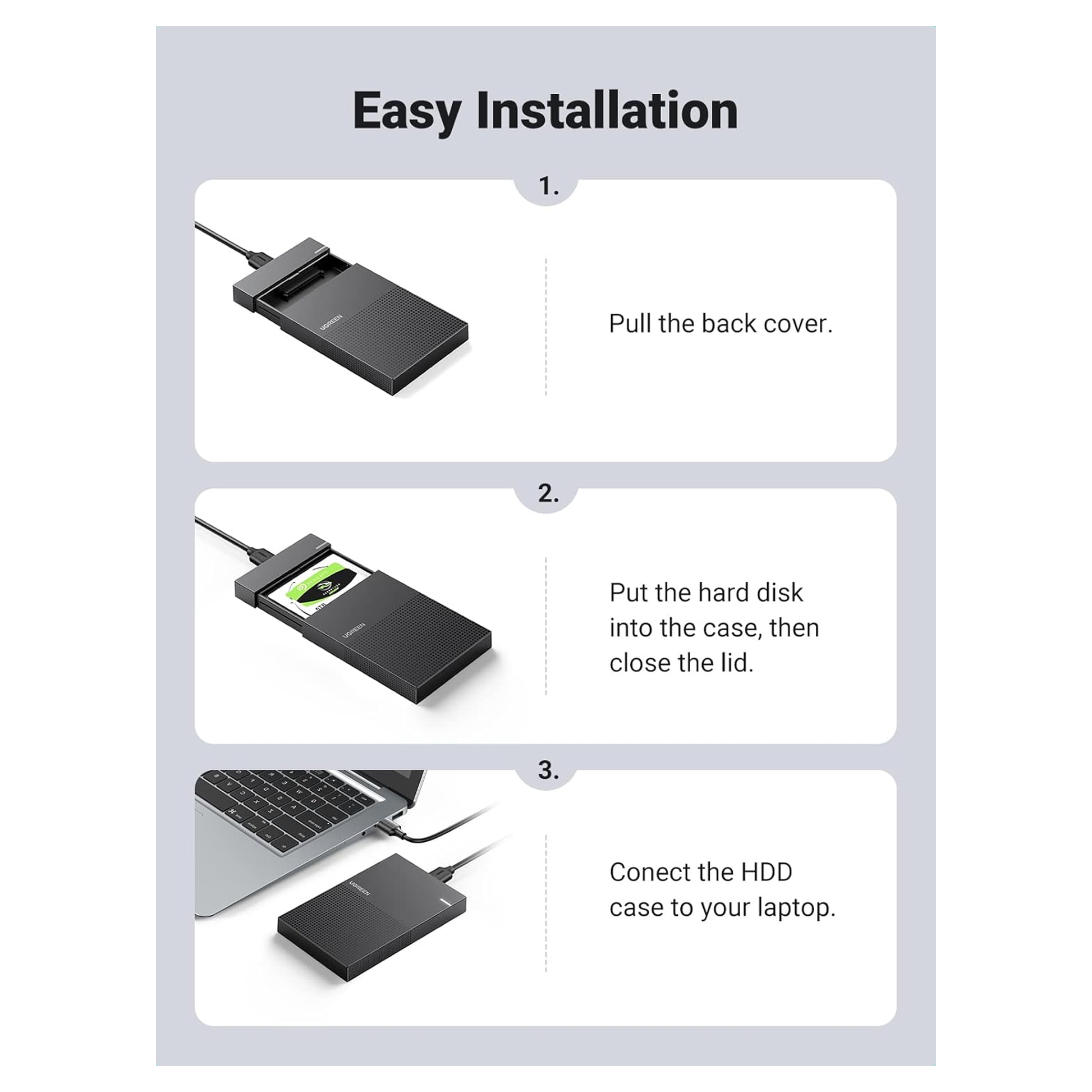 علبة محرك الأقراص الصلبة USB C مقاس 2.5 بوصة من UGREEN