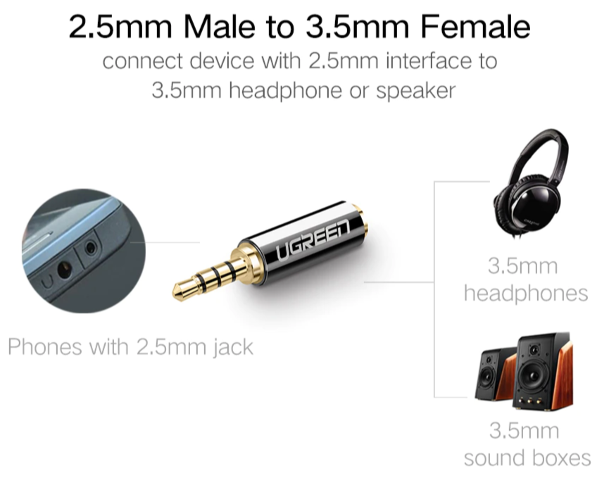محول UGREEN من ذكر 3.5 مم إلى أنثى 2.5 مم