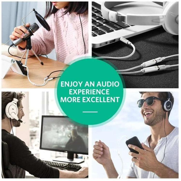 تفاصيل المنتج لموزع صوت AUX + ميكروفون UGREEN مقاس 3.5 مم ذكر إلى 3.5 مم أنثى لسماعات الأذن والميكروفون - PH