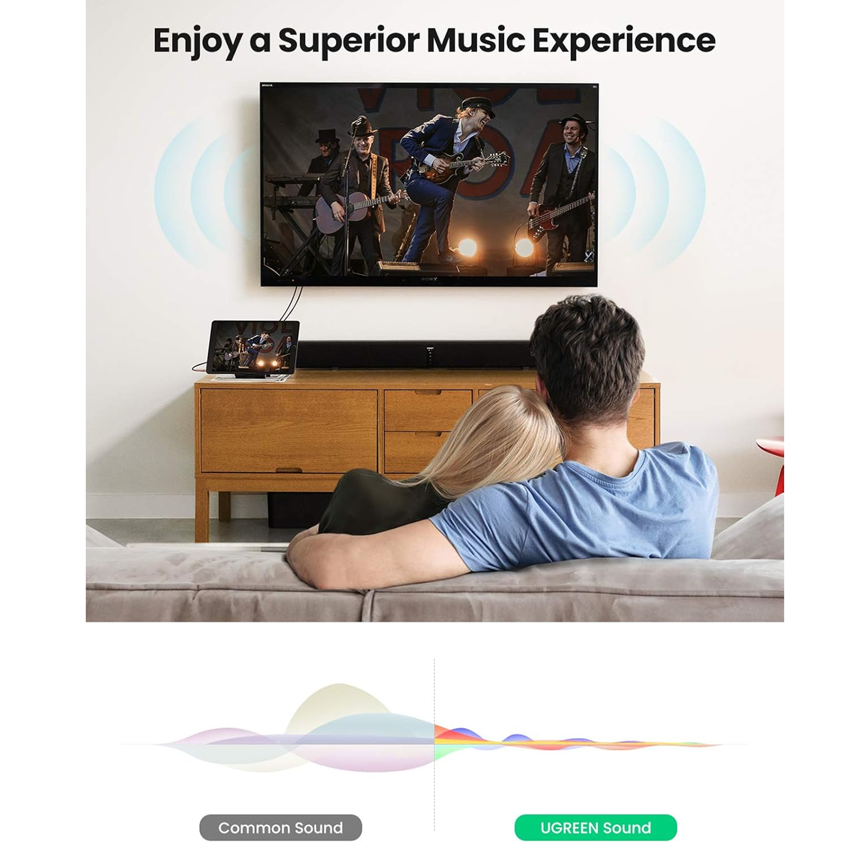 جودة صوت ممتازة: تم تصميمه باستخدام موصل مزدوج الحماية ونواة نحاسية مطلية بالقصدير، محول UGREEN 2 RCA إلى Aux سيمنحك جودة صوت نقية ونظيفة وخالية من التداخل تمامًا