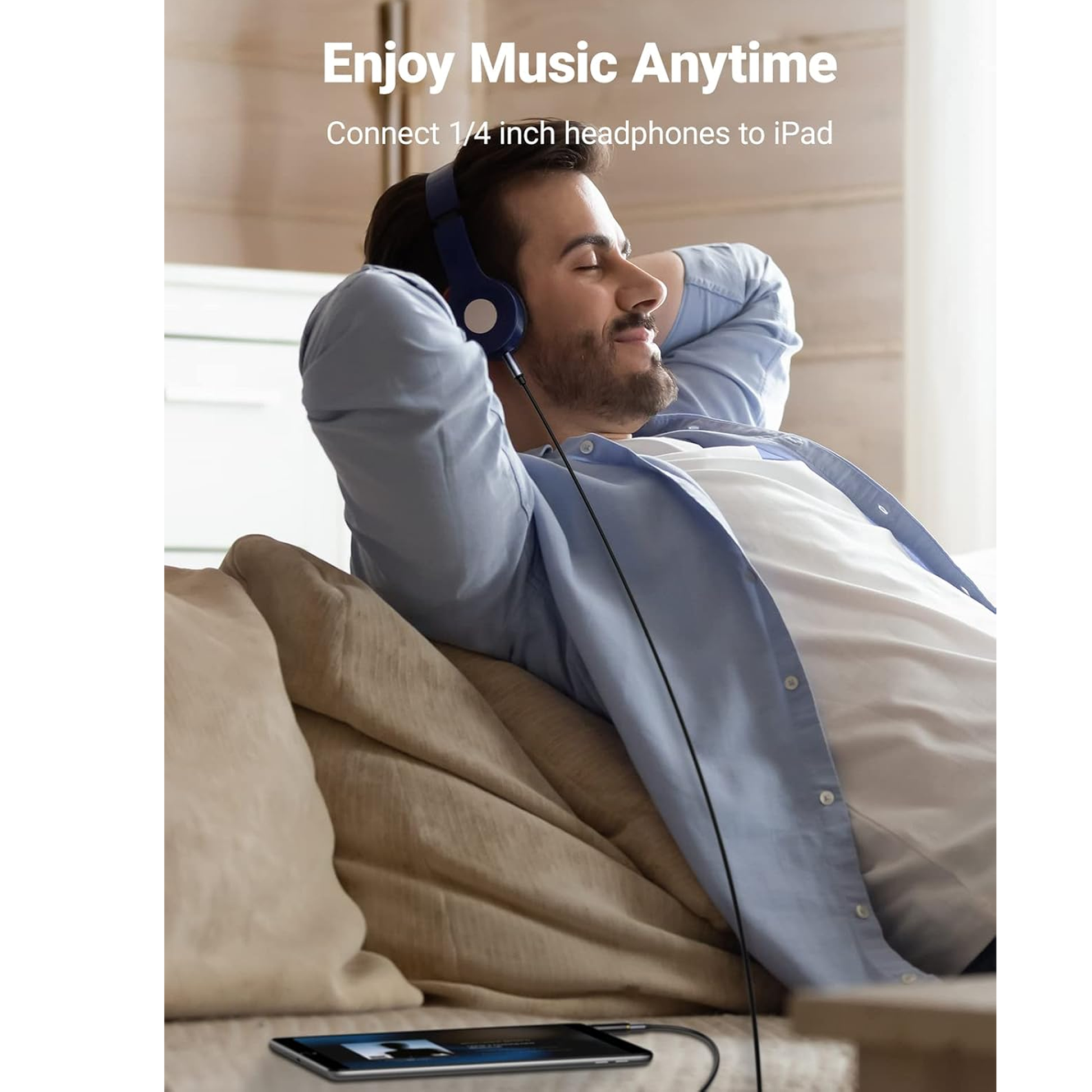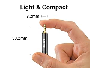 يمكن لمحول مقبس الصوت UGREEN مقاس 3.5 مم إلى 1/4 بوصة توصيل الهواتف الذكية أو الأجهزة اللوحية أو أجهزة iPod أو سماعات الرأس بمقابس ستيريو قياسية مقاس 3.5 مم (1/8 بوصة) بسهولة بأجهزة صوتية بمقبس مقاس 1/4 بوصة عبر كابل ذكر إلى ذكر مقاس 1/4 بوصة