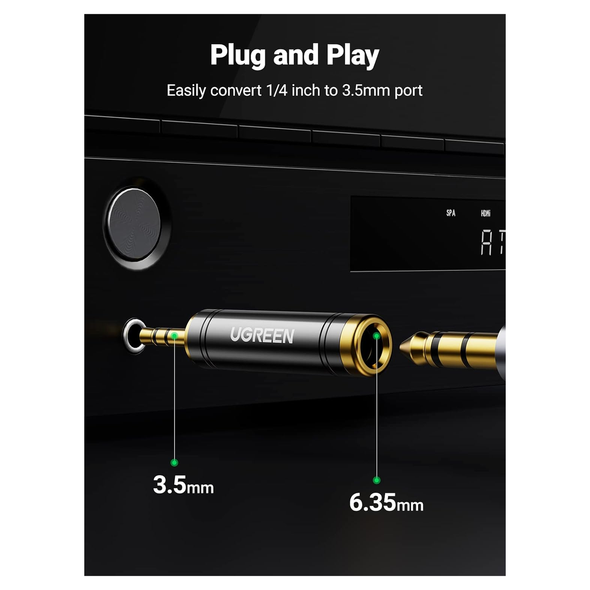 محول صوت UGREEN من 3.5 مم ذكر إلى 6.35/6.5 مم أنثى