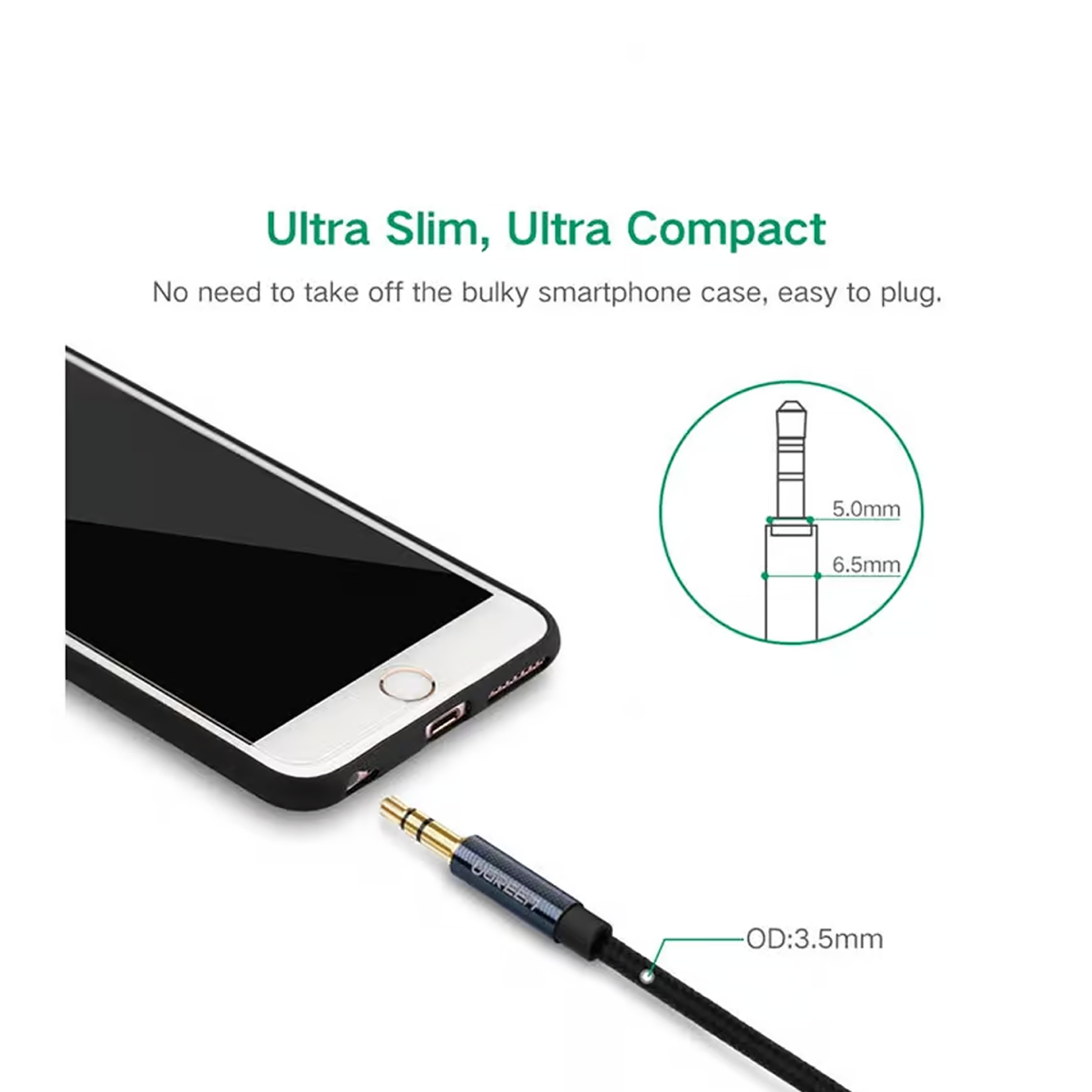 كابل الصوت عالي الجودة بمقابس صغيرة مقاس 3.5 مم من ماركة Ugreen الشهيرة، يُلبي توقعات مُحبي الصوت عالي الجودة. يتميز بقلب مصنوع من النحاس الخالي من الأكسجين ومقابس مطلية بالذهب. تضمن هذه الميزات وصول الإشارة المُرسلة من مصدر الصوت إلى المُستقبِل دون أي تداخل أو ضغط.