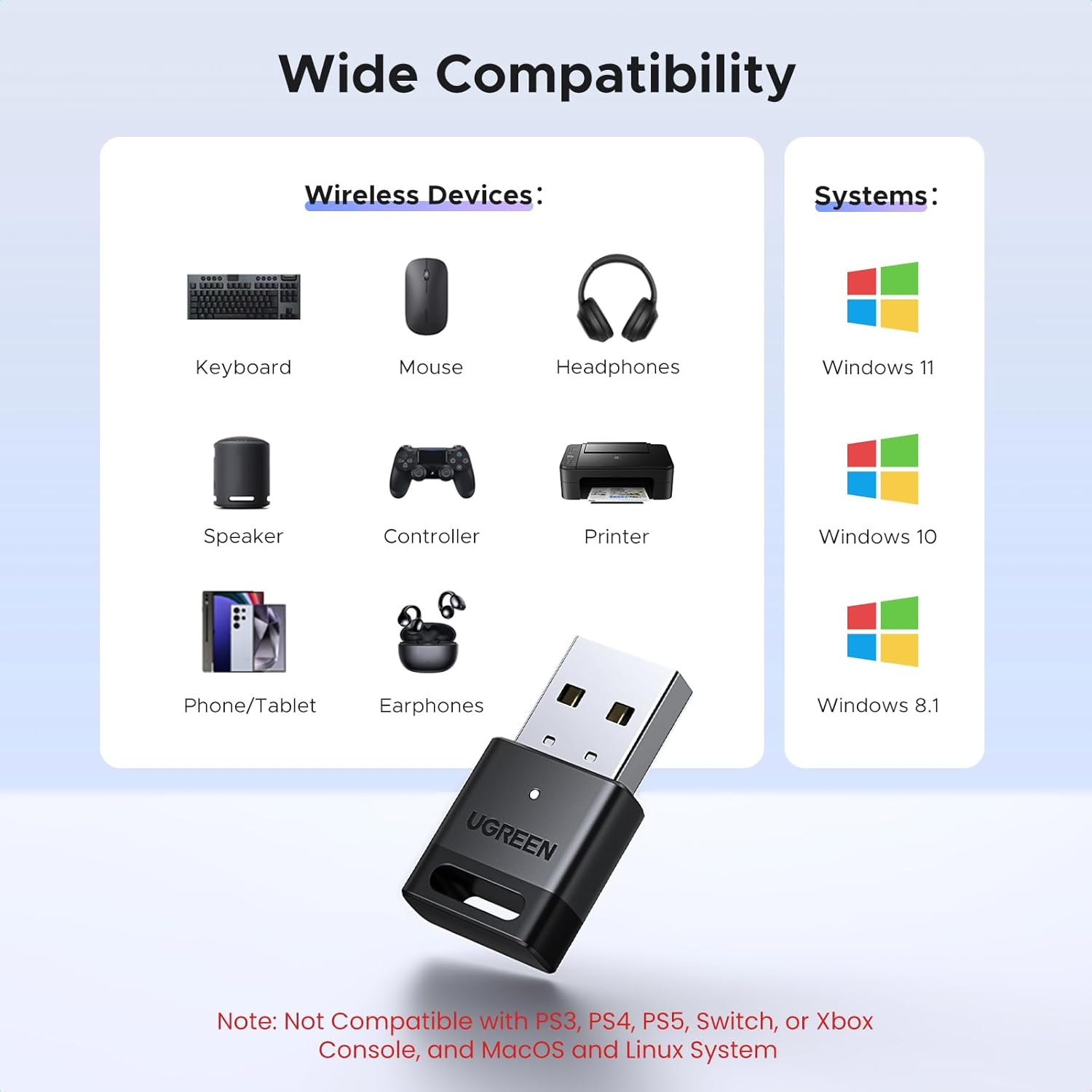 التوصيل والتشغيل: مُحوّل البلوتوث مُصمّم لأنظمة ويندوز فقط، ولا يدعم أنظمة أخرى. لا يتطلب تثبيت أي برنامج تشغيل على أنظمة ويندوز 11/10/8.1. لا يدعم أنظمة ويندوز 8/7، ولينكس، وماك أو إس.