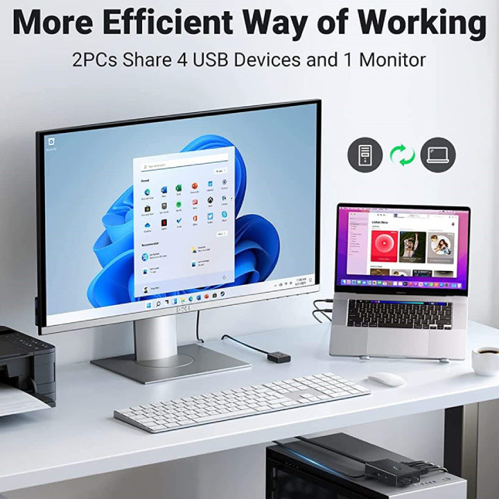 يمكن لجهازين (كمبيوتر، كمبيوتر محمول، وحدة تحكم ألعاب أو صندوق تلفزيون) مشاركة الشاشة ولوحة المفاتيح والماوس والطابعة والماسح الضوئي ومحرك أقراص فلاش وأجهزة USB الأخرى.