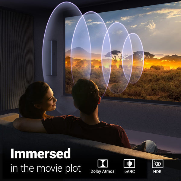 - يوفر كابل HDMI 2.1 سهولة توصيل الصوت Dolby Atmos وDTS Master/DTS:X من التلفزيون إلى مكبر الصوت/جهاز استقبال AV، لتغمر نفسك في وليمة الصوت.