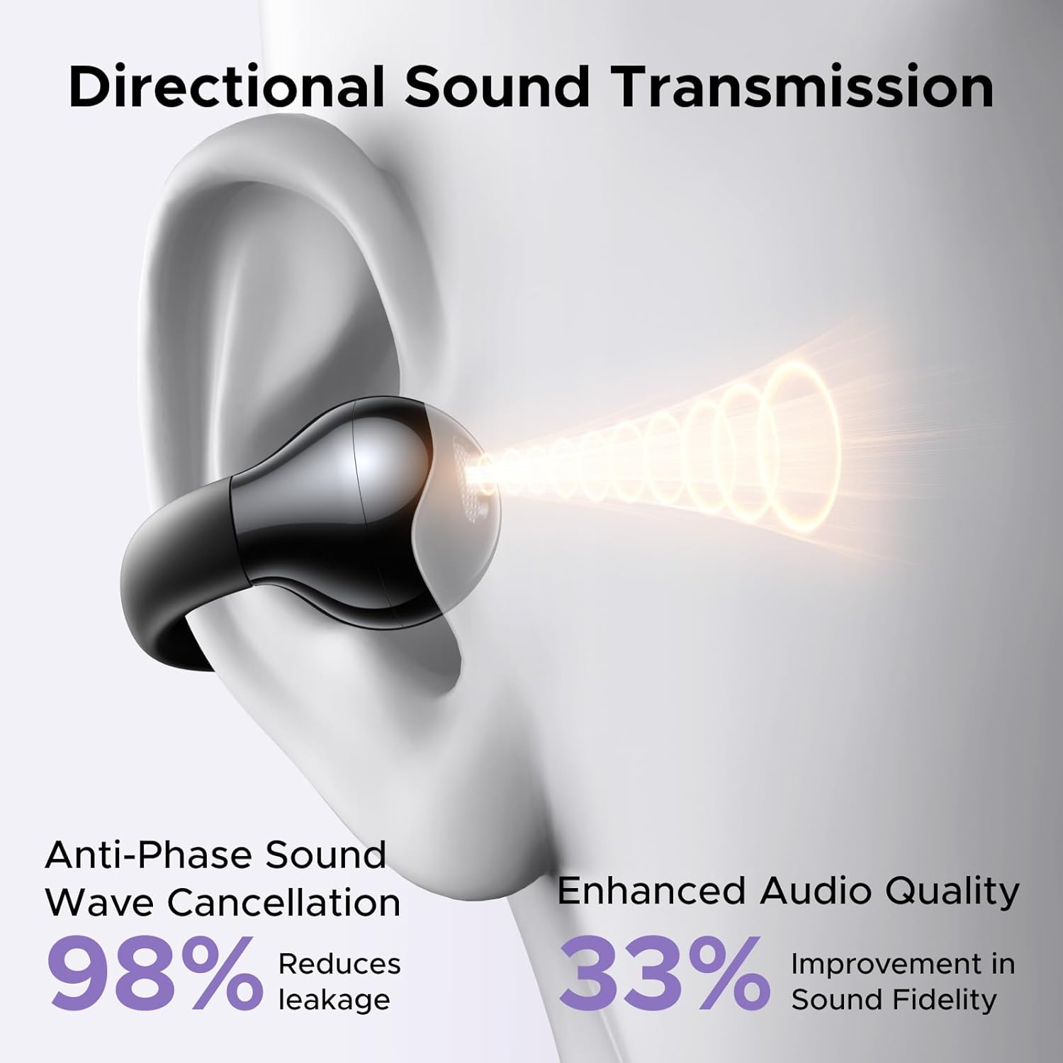 Clip-on open-ear design provides a secure fit without blocking external sounds, ensuring safety during outdoor activities.