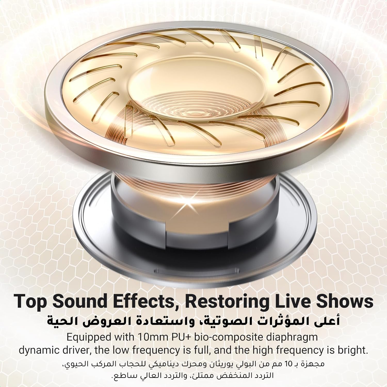 Crystal Sound inside Your Mind Checked by UGREEN's exclusive acoustic team, HiTune T3 Pro earbuds provide guaranteed high-quality sound. Equipped with a 10mm bio-diaphragm dynamic speaker, the wireless bluetooth headset can reproduce the sound of a live concert for you.