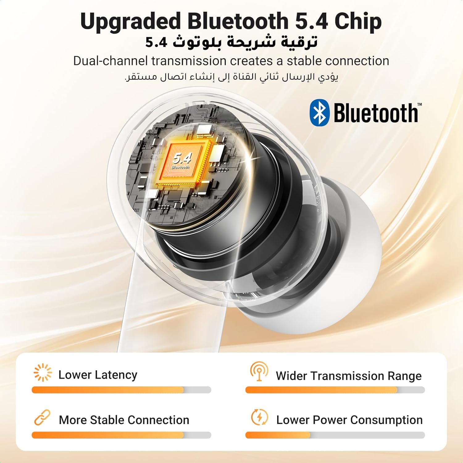Stable connection, One Step Faster Applied with Bluetooth 5.4 chip, UGREEN earphones Provide a low-latency gaming mode to ensure audio and video synchronization. With the upgraded chip, UGREEN wireless earbuds support a more stable connection and wider transmission range.