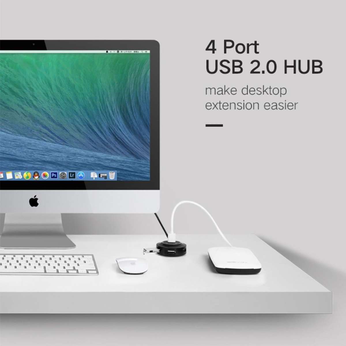 موزع يوجرين USB2.0 4 منافذ USB-A بسرعة 480 ميجابت في الثانية (أسود/أبيض)