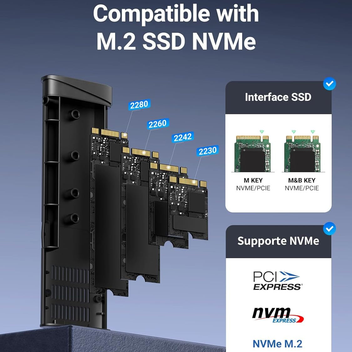علبة NVMe بسرعة 10 جيجابت في الثانية: مع منفذ USB 3.2 من الجيل الثاني، يمكن لهذه العلبة M.2 تحقيق معدل نقل بيانات يبلغ 10 جيجابت في الثانية. متوافقة مع USB 3.1 وUSB 3.0.