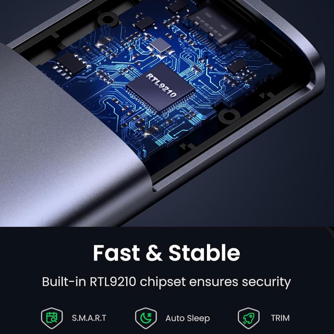 الأمان والاستقرار: يعتمد غلاف القرص الصلب هذا على شريحة RTL9210 المتقدمة مع ماس كهربائي، والتيار الزائد والحماية المتعددة لضمان سلامة SSD والبيانات القيمة، ويدعم UASP/Trim بسرعة نقل عالية