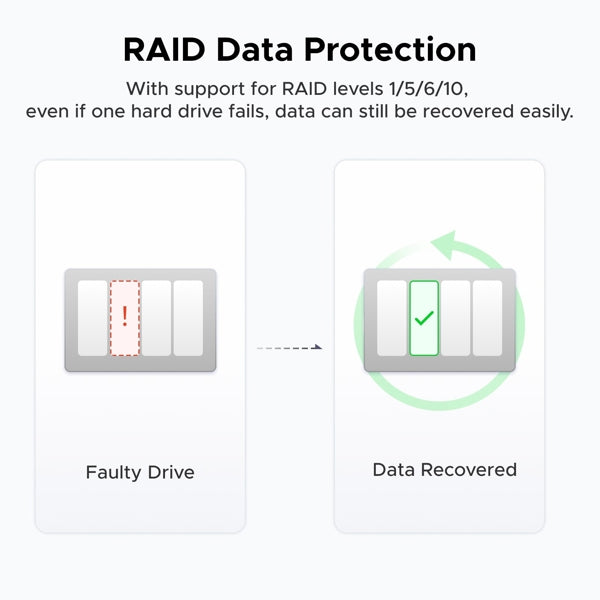 أربعة فتحات وسعة تخزين قصوى تصل إلى ١١٢ تيرابايت: تدعم فتحات SATA الأربعة سعة تخزين تصل إلى ٢٤ تيرابايت لكل منها، ويمكنك أيضًا تركيب محركي أقراص SSD مدمجين إضافيين من نوع M.2 NVMe بسعة تصل إلى ٨ تيرابايت لكل منهما (للتخزين المؤقت على أقراص SSD أو للتخزين السريع الإضافي). مع استخدام جميع الفتحات، تبلغ السعة القصوى ١١٢ تيرابايت.