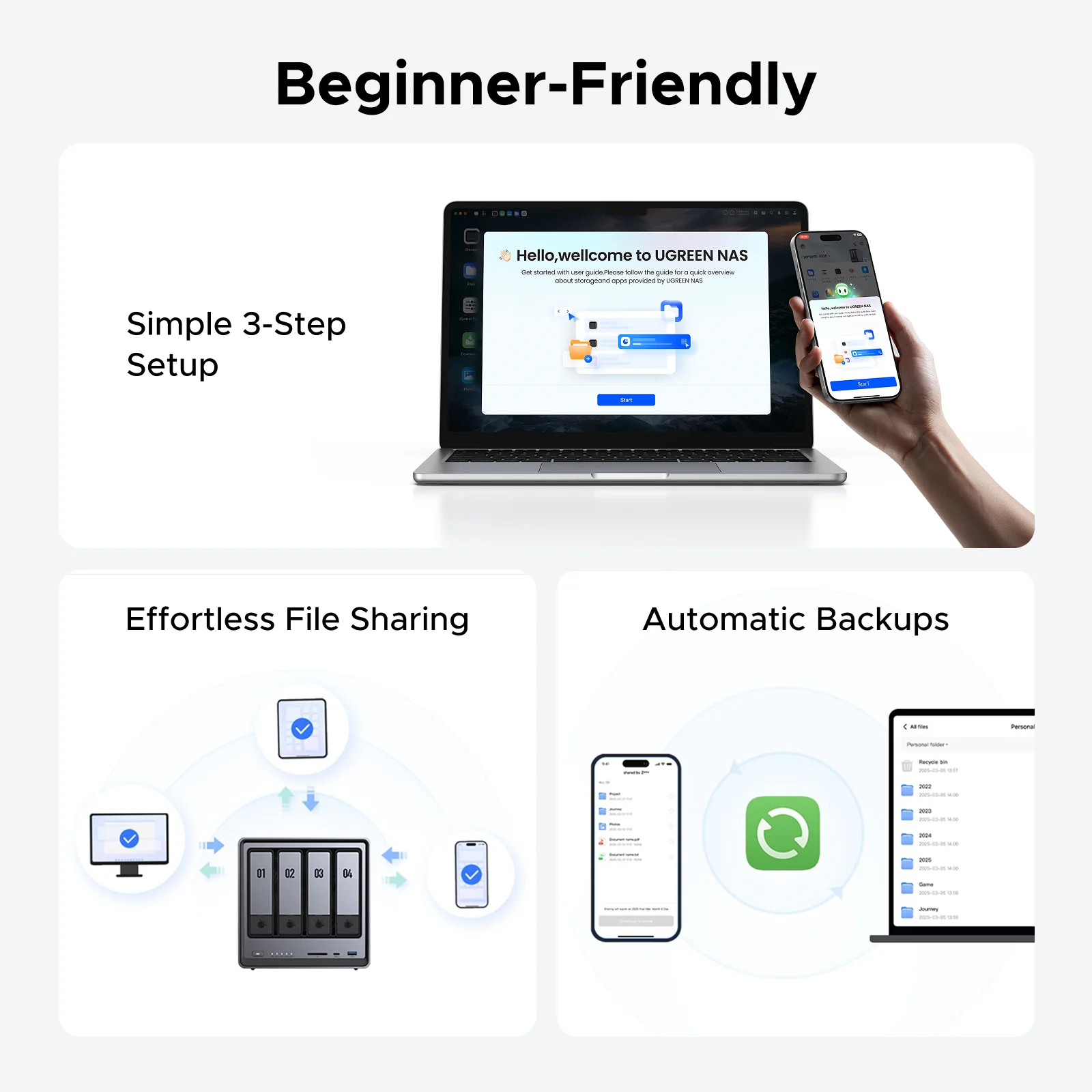 تطبيق مخصص سهل الاستخدام: أدر مساحة تخزينك وافتح ملفاتك من أي جهاز باستخدام برنامجنا المُصمم خصيصًا. لا حاجة لتنزيل أدوات متعددة أو استخدام أي برامج خارجية معقدة. متوفر لأنظمة Android وiOS وWindows وMac ومتصفحات الويب وأجهزة التلفزيون الذكية. (يرجى اتباع التعليمات لتحديث البرنامج الثابت لتجربة أفضل).