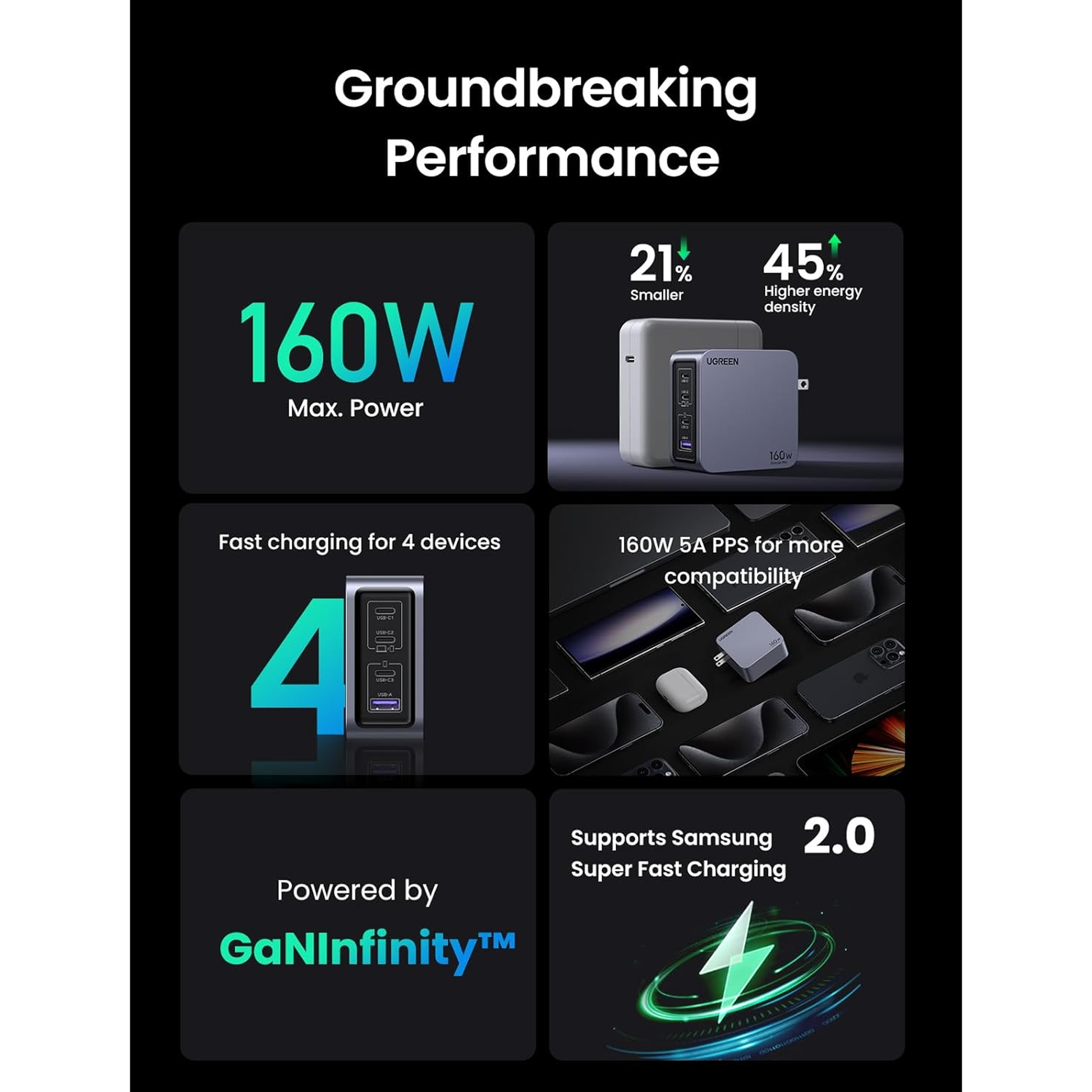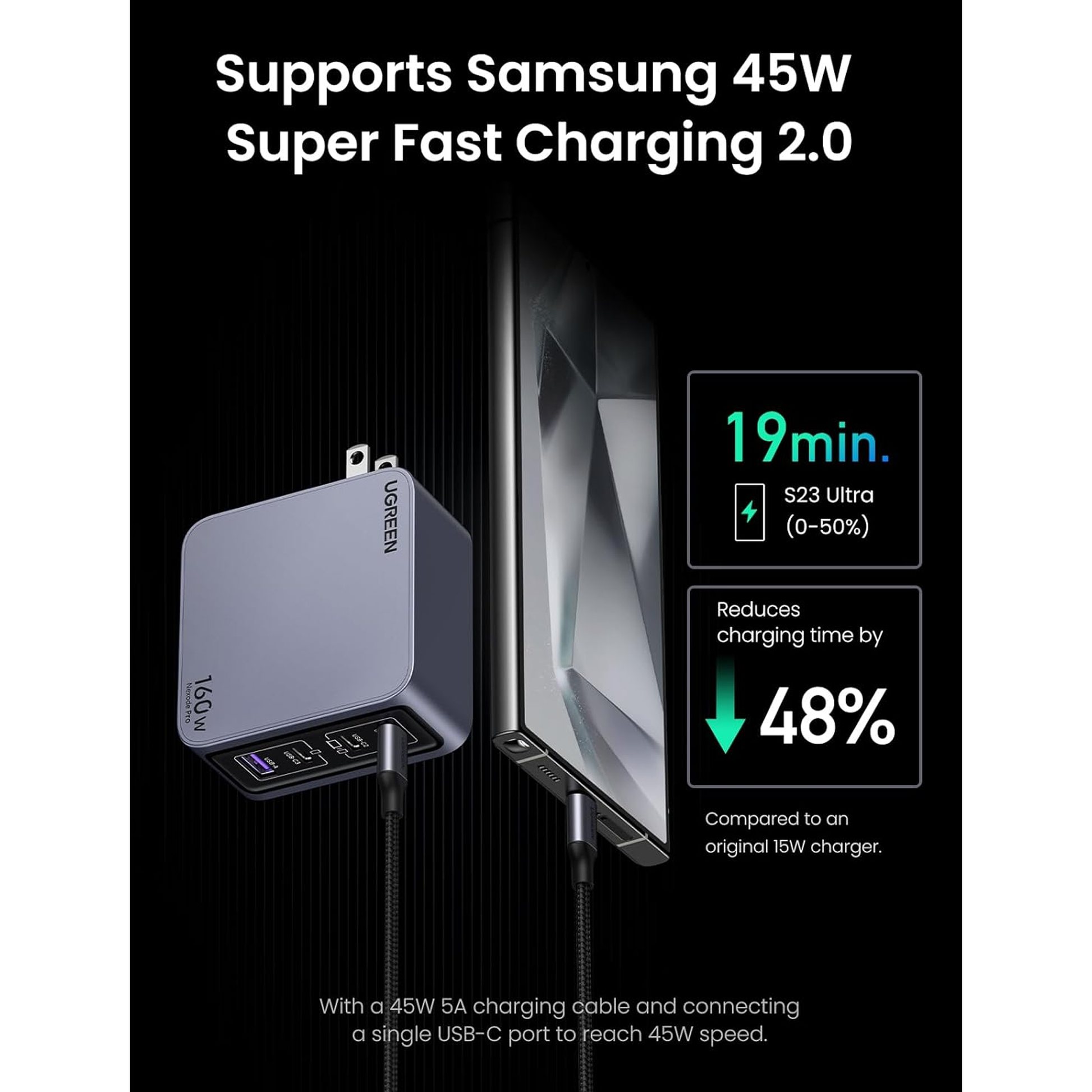 شاحن حائط يوجرين بقوة 160 واط 4 منافذ / 25877