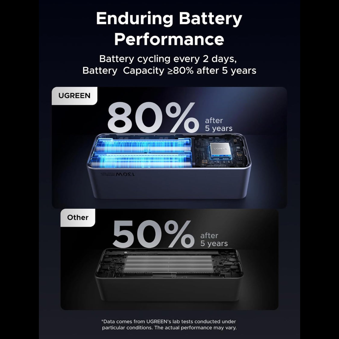 Durable & Safe: 100W power bank uses automotive grade batteries, multiple protection and professional safety certifications, real-time temperature detection and high-speed heat dissipation let you to use it with confidence and protect charging devices