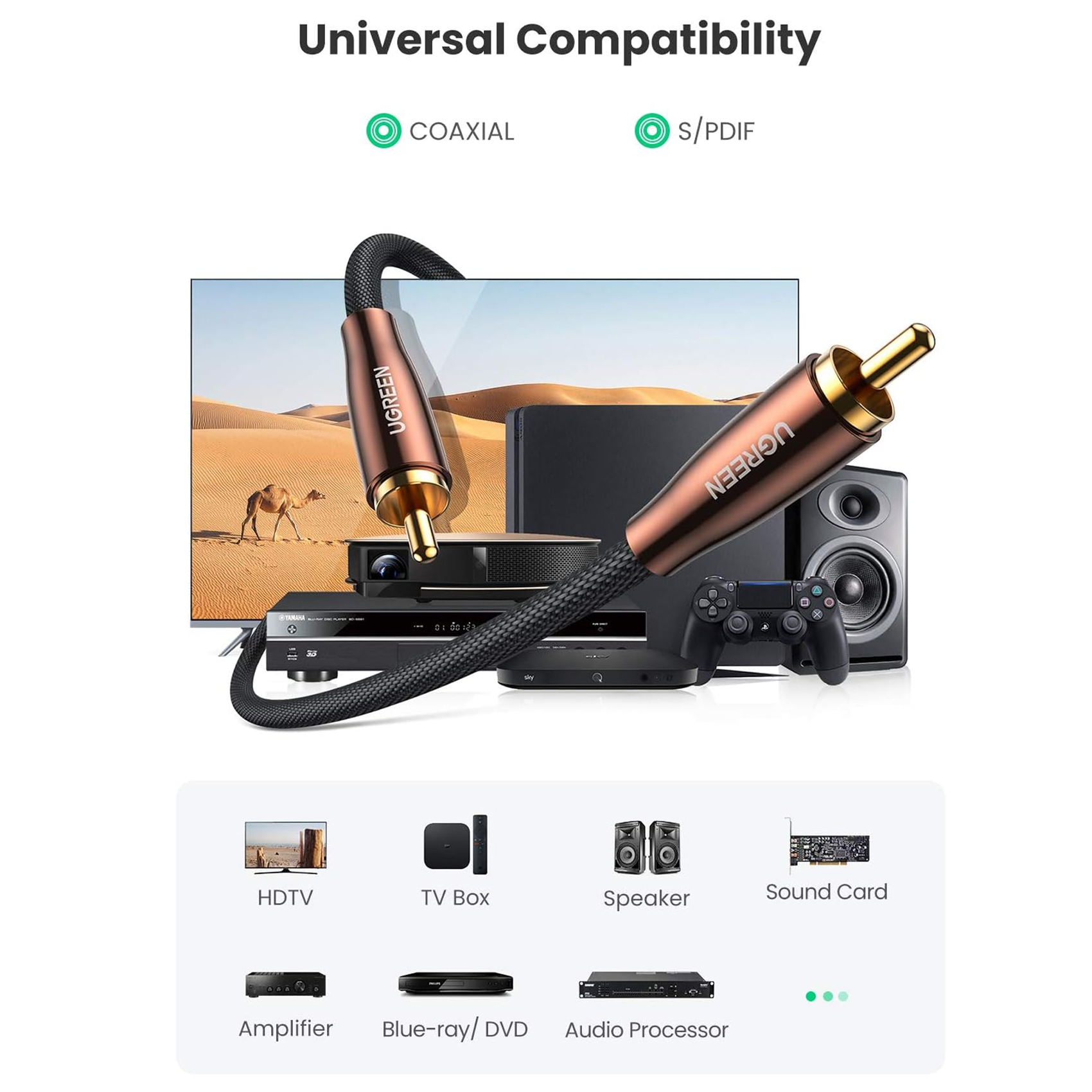 كابل محوري RCA من UGREEN، غلاف نحاسي مضفر، 1 متر
