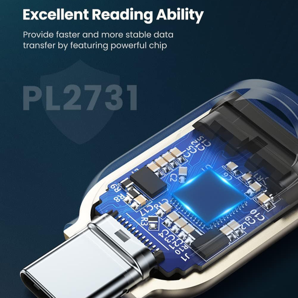 مواد فاخرة: صُنعت بطاقة Micro SD إلى USB C من سبيكة الزنك الفاخرة، مما يُسهّل تبديد الحرارة على السطح مقارنةً بسبائك الألومنيوم، مما يحمي الشريحة ويطيل عمرها الافتراضي. كما أن هيكل سبيكة الزنك مقاوم للتآكل والتلف، ويقلل من تلف السطح.