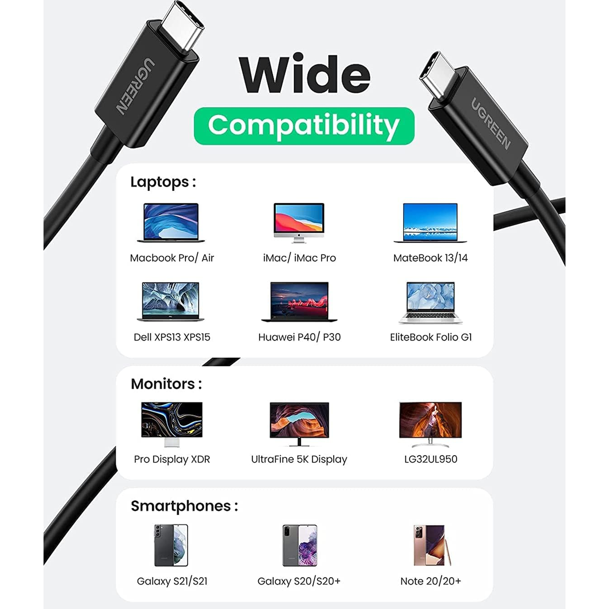 كابل Thunderbolt 4 من UGREEN [معتمد من Intel]، كابل شاحن USB C إلى USB C بقوة 100 وات مع شحن سريع / 30389