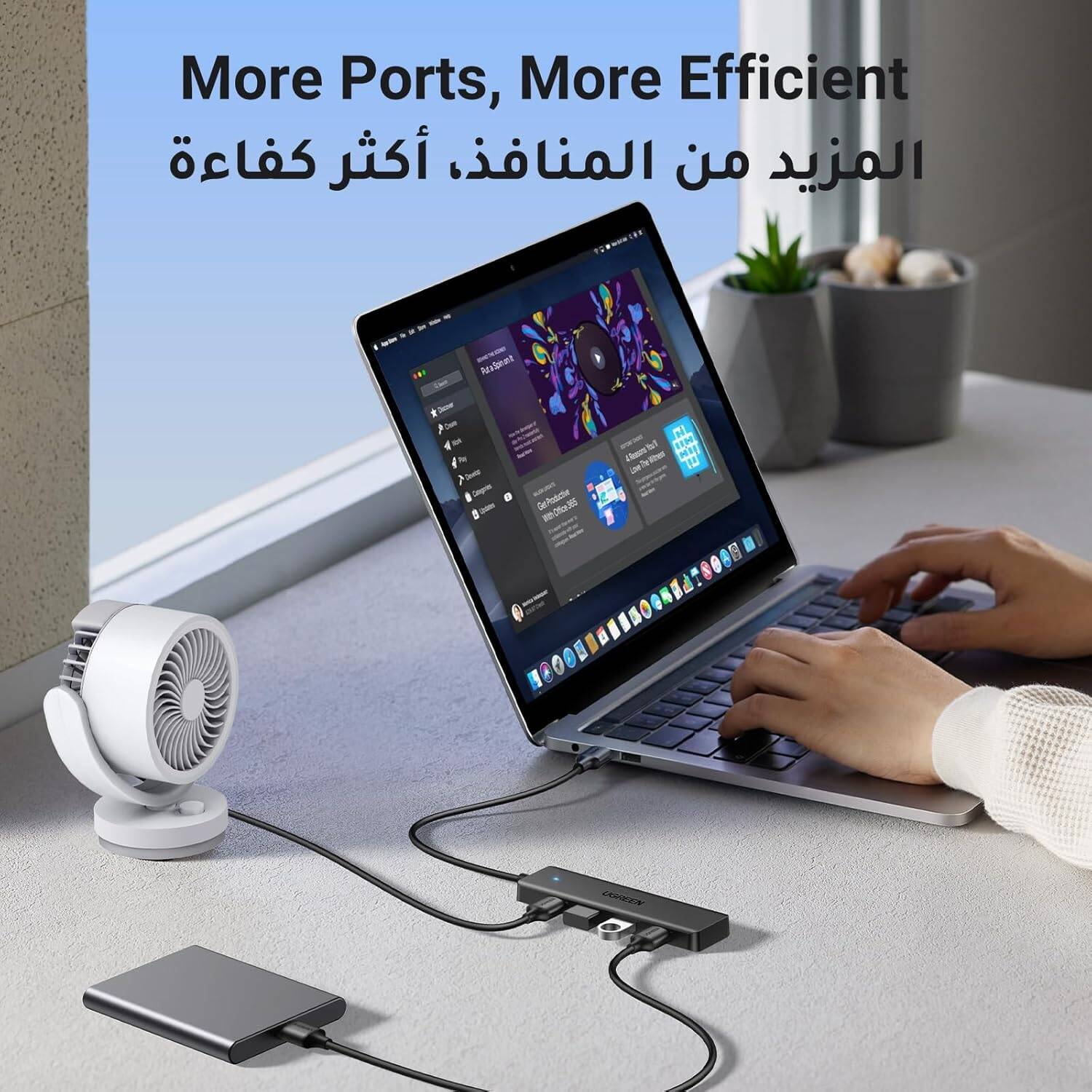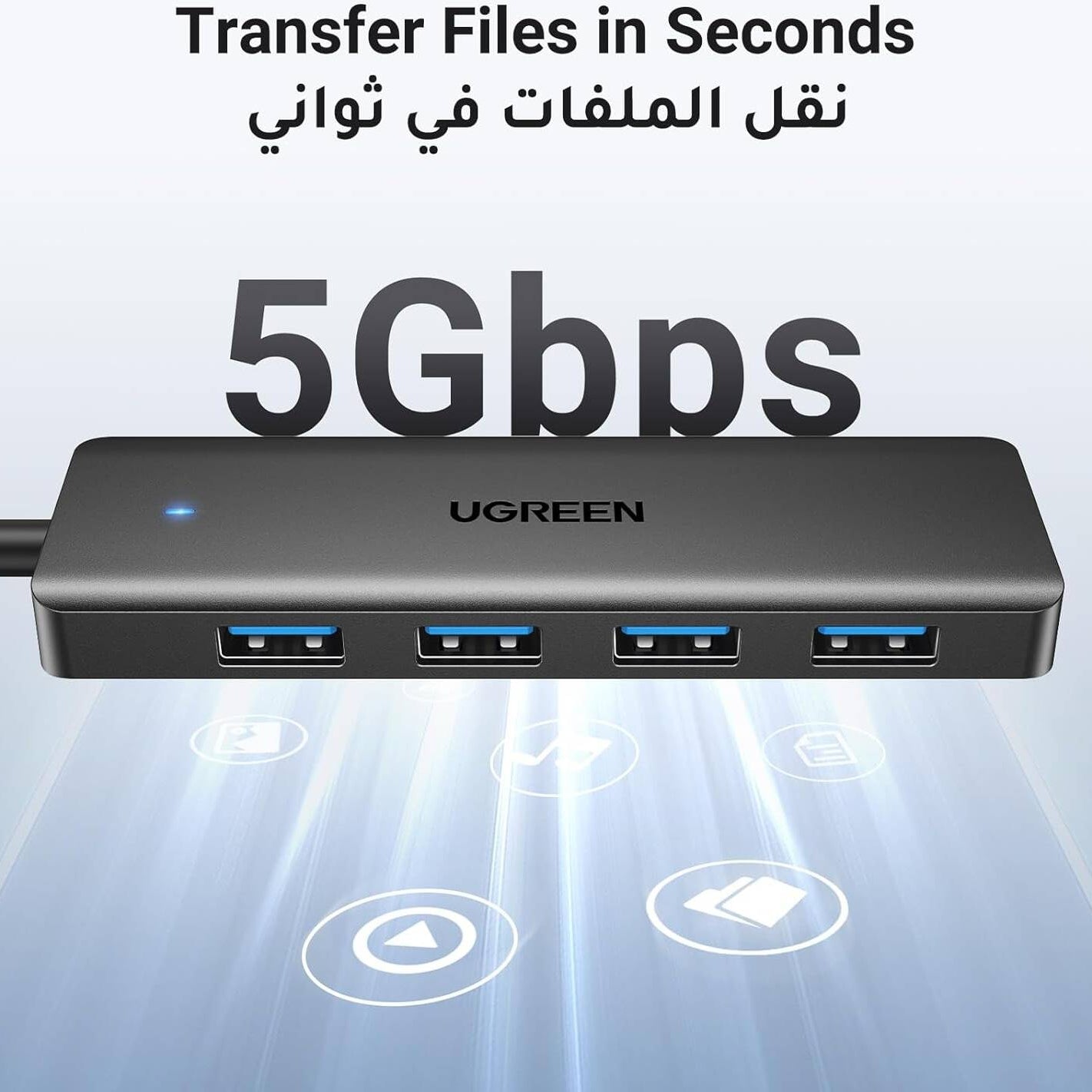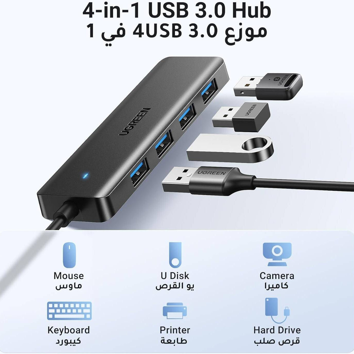 موزع USB 3.0 من UGREEN، 4 منافذ، موزع USB A، موسع USB فائق النحافة