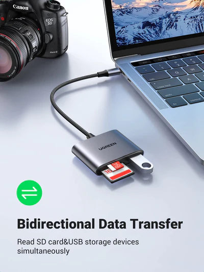 قارئ بطاقات الذاكرة USB-C إلى SD/TF + USB 2.0 من يوجرين / 80798