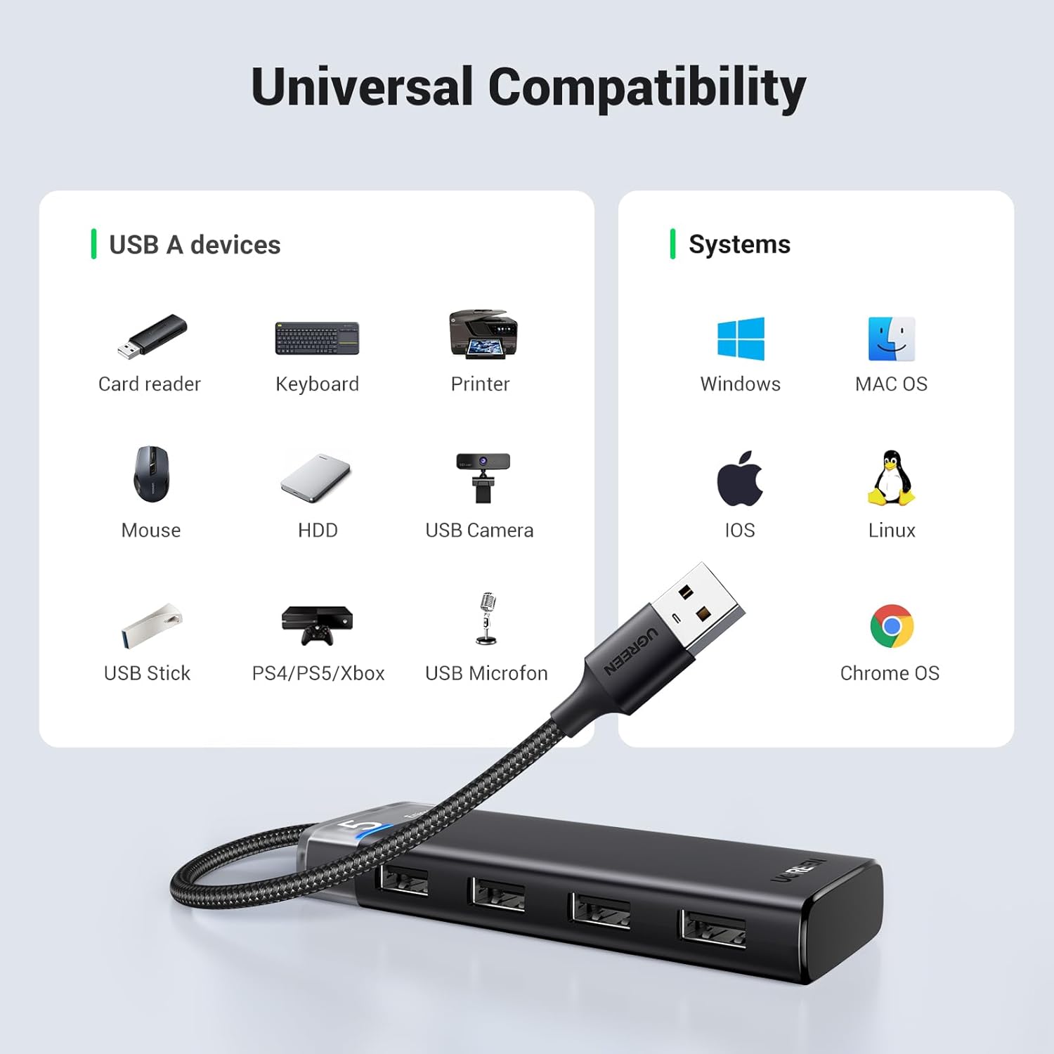 ال موزع USB 15548 من يوجرين يعطيك 4 منافذ USB-A 3.2 من الجيل الأول ، توفر سرعات نقل بيانات سريعة ومستقرة تصل إلى 5 جيجابت في الثانية - مثالي لمحركات الأقراص المحمولة ولوحات المفاتيح والفئران والمزيد.