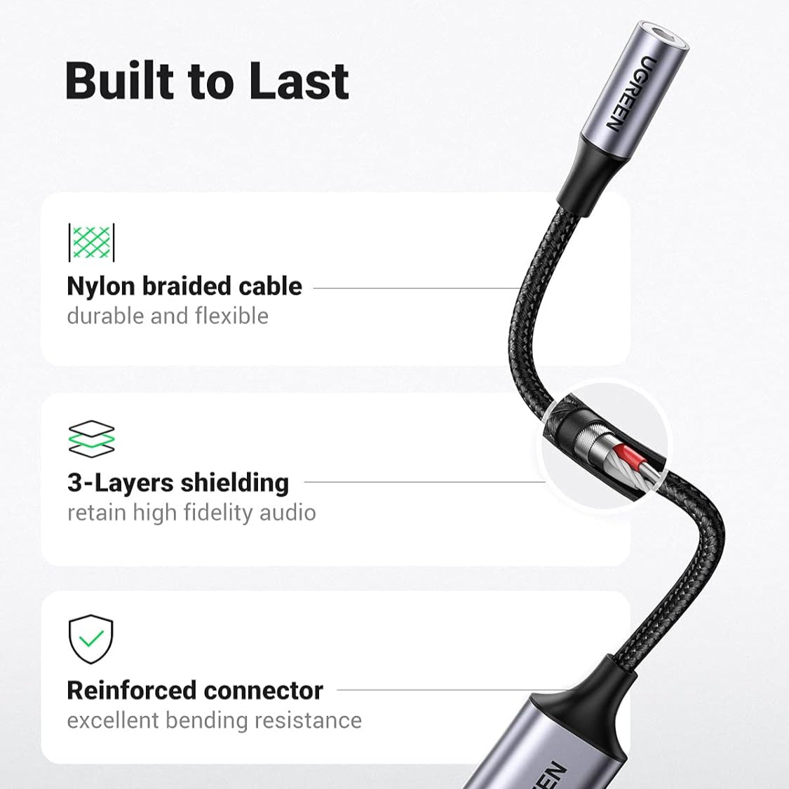 مصمم ليدوم طويلاً: بفضل هيكله المصنوع من سبائك الألومنيوم، يتميز محول AUX إلى USB بمتانة وسهولة حمل أكبر من محولات الصوت USB البلاستيكية الأخرى. يضمن تصميمه المضفر من النايلون نقل صوت مستقر. أثبتت أكثر من 10000 اختبار انحناء أن محول سماعة الرأس USB قادر على منع التلف الناتج عن التشابك والخدش.