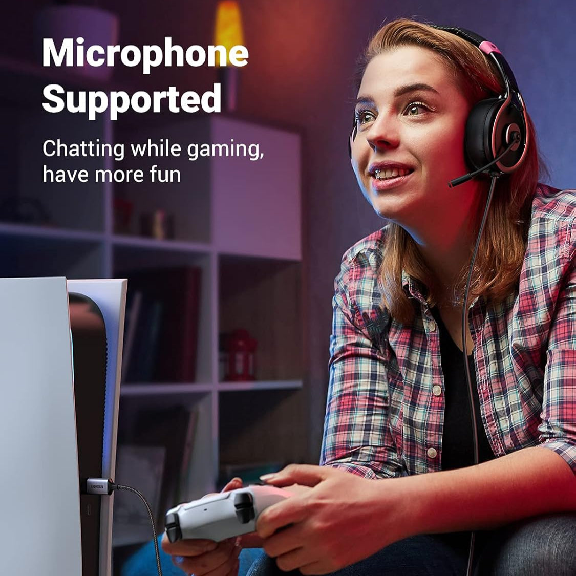 محول صوت USB 2 في 1: يدعم محول الصوت UGREEN من USB إلى مقبس 3.5 مم الاستماع والتحدث. يتيح لك التحكم المدمج ووظيفة الميكروفون الدردشة أثناء اللعب. يتيح لك هذا المحول USB Aux توصيل سماعات الرأس، وسماعات الرأس، ومكبرات الصوت بمقبس 3.5 مم بجهاز الكمبيوتر الخاص بك عبر منفذ USB A.