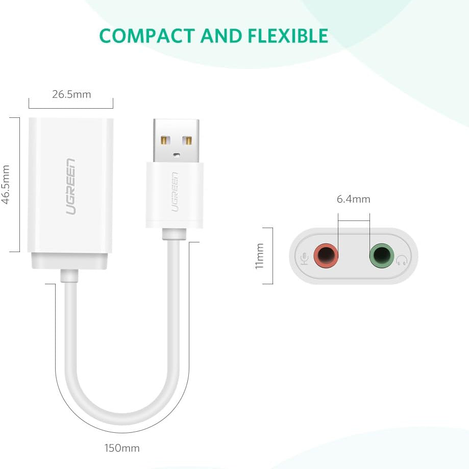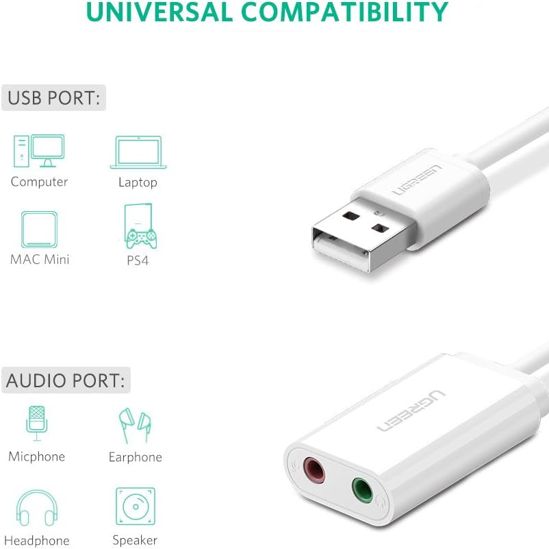محول صوت سماعة الرأس من USB إلى 3.5 ملم من UGREEN / US205