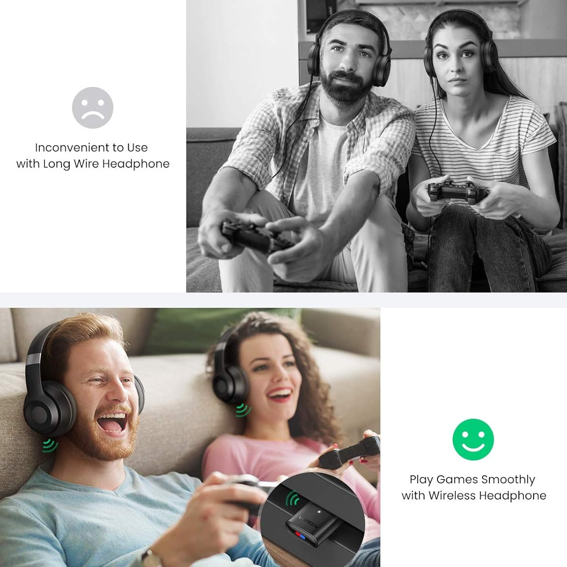 التوصيل والتشغيل : جهاز إرسال يوجرين بلوتوث الإصدار 5.0 سهل التوصيل والتشغيل، دون الحاجة إلى برامج تشغيل خارجية. إضافة رائعة لأجهزة سويتش وبلاي ستيشن 5/4/3، تُحسّن تجربة اللعب بشكل ملحوظ!
