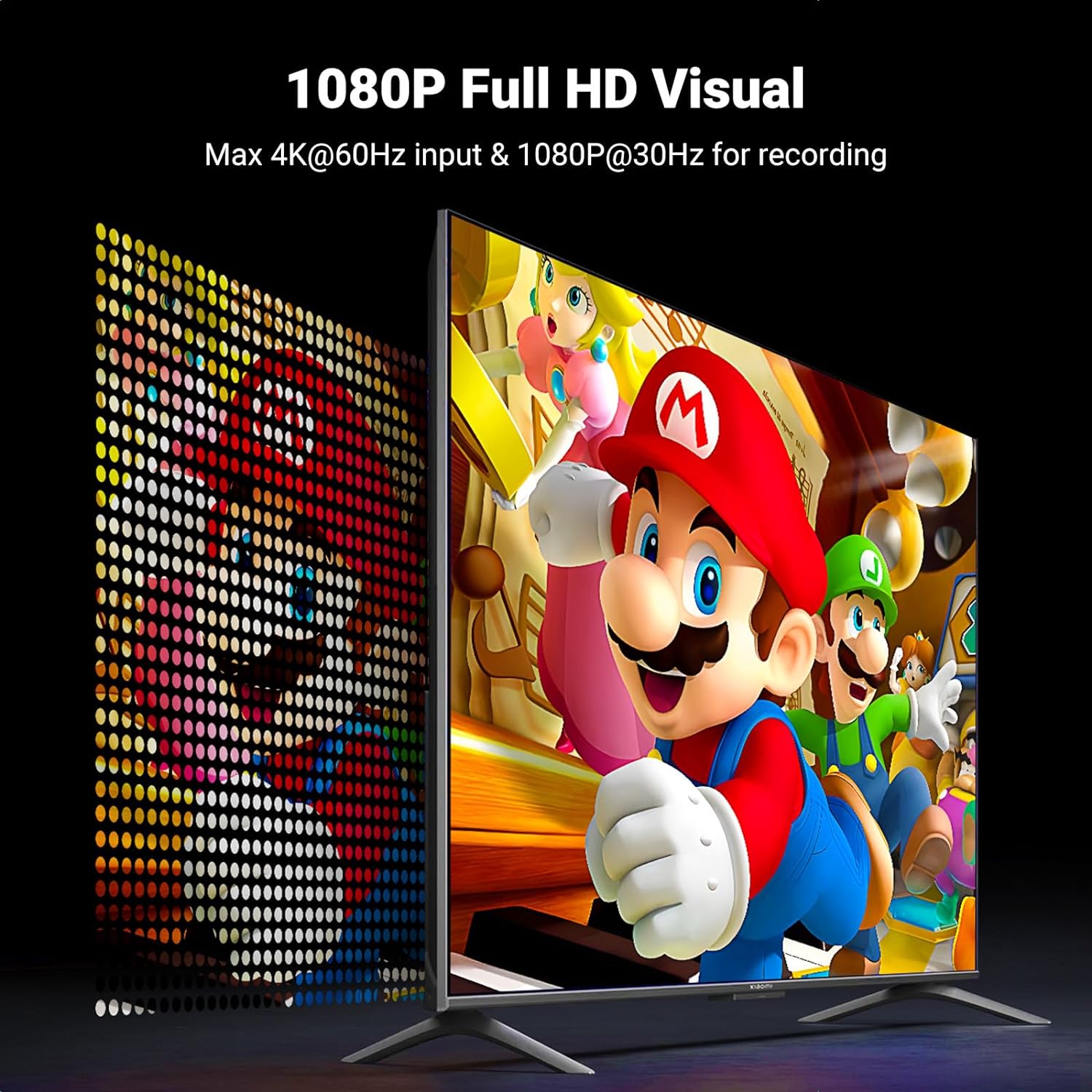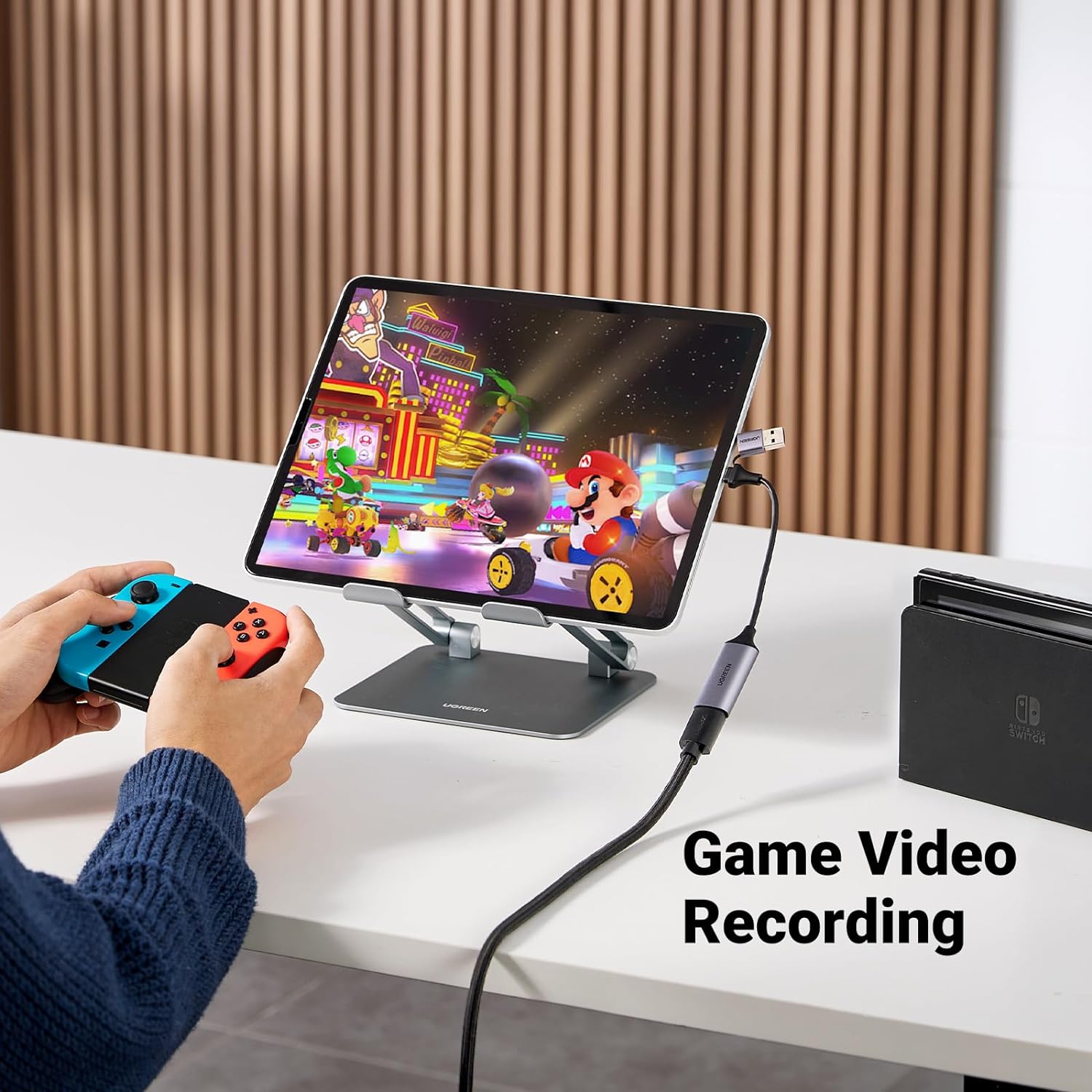 بطاقة التقاط فيديو UGREEN 4K HDMI إلى USB-A/USB-C بطاقة التقاط HDMI عالية الدقة 1080 بكسل USB 2.0 لالتقاط الفيديو وتسجيل الصوت للألعاب والبث والتدريس ومؤتمرات الفيديو